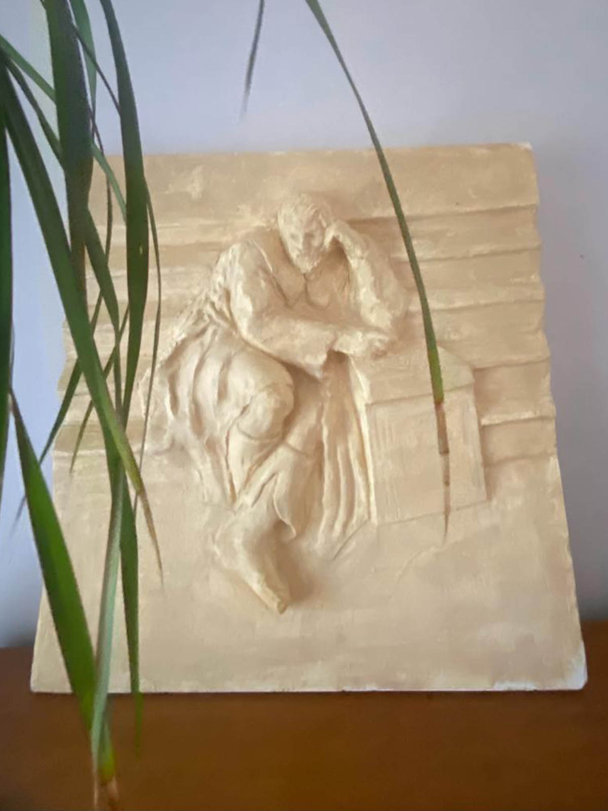 El ile yapılmış duvara asılabilen rölyef heykel