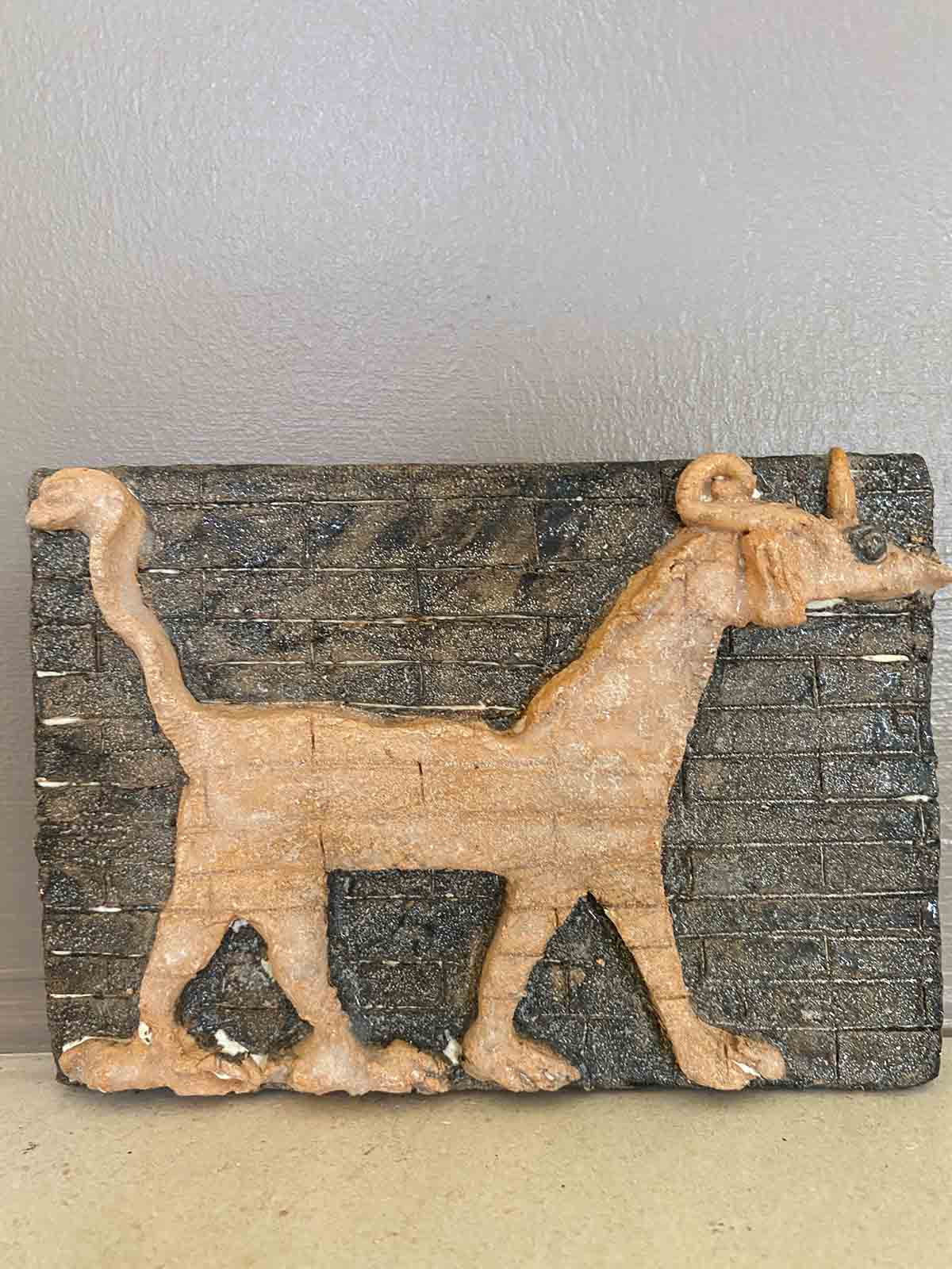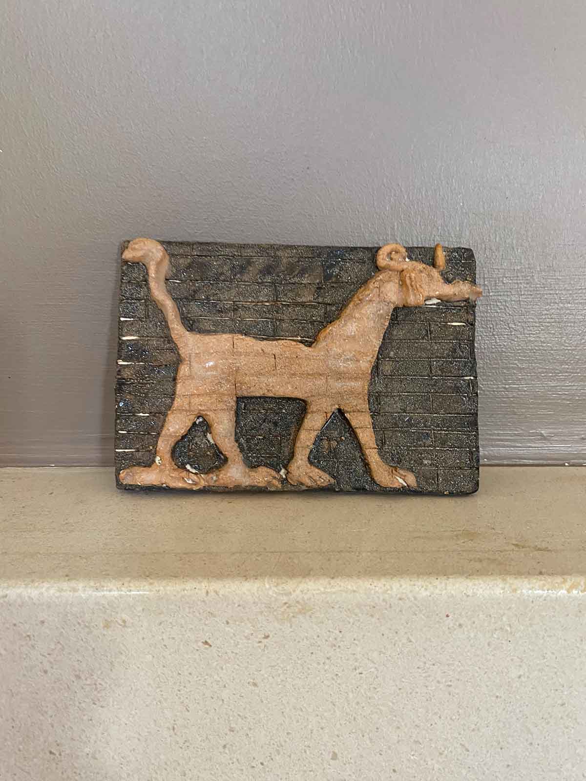 Baktıkça sizi geçmişde mistik yolculuğa çıkaracak büyülü kent Babil’e giriş kapısında kullanılan hayan figürü dekoratif küçük seramik duvar veya sehpa obje