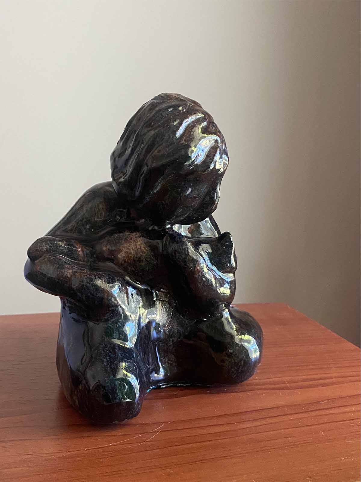 Odanıza neşe katacak, el ile yapılmış özel parlak siyah seramik boyası fırınlanmış küçük kız heykeli